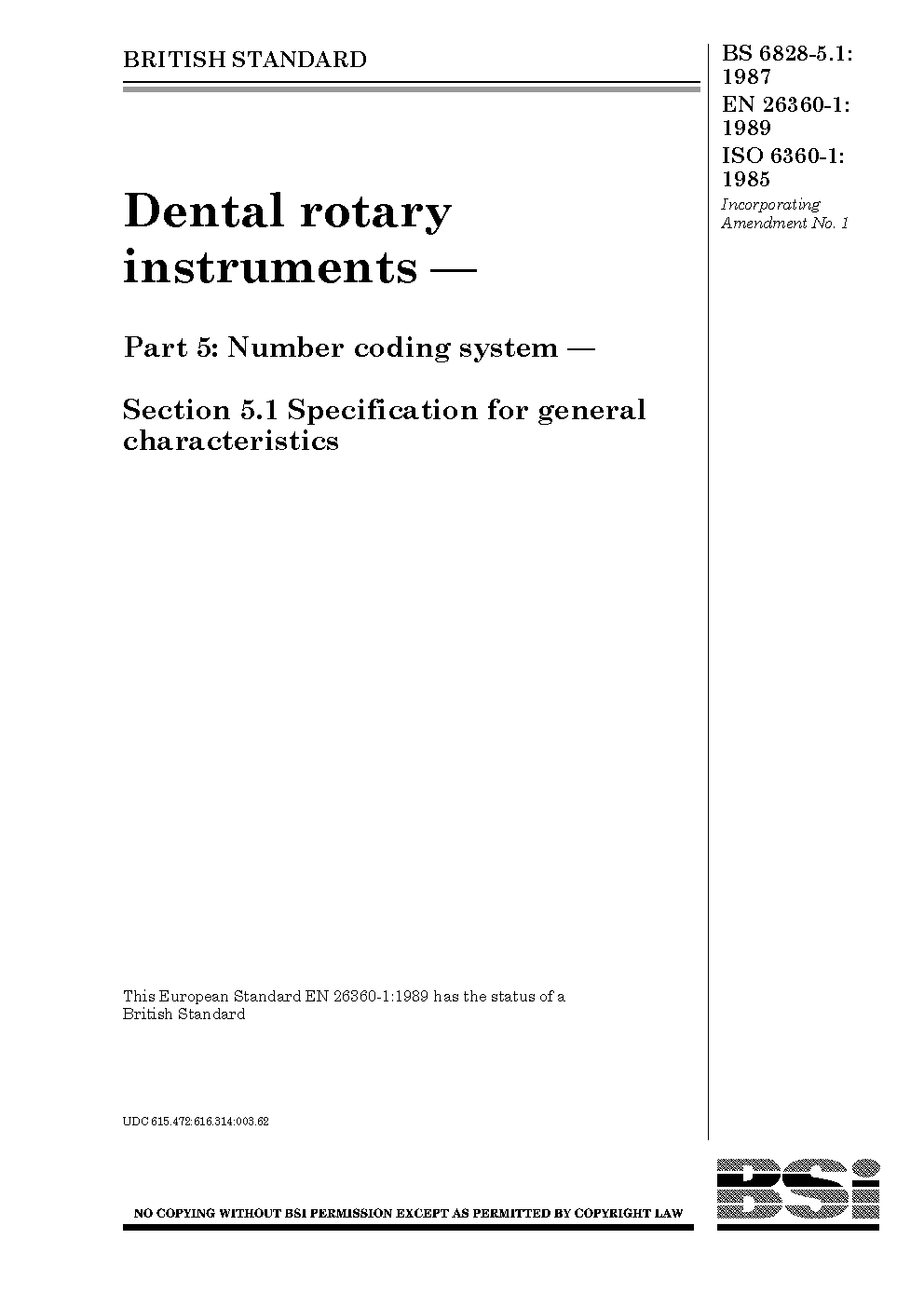 Dental rotary instruments. Number coding system Specification for general characteristics