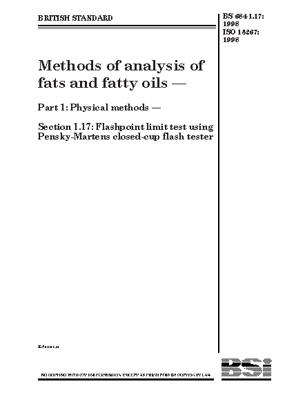 Methods of analysis fats and fatty oils. Physical methods Flashpoint limit test using Pensky-Martens closed-cup flash tester