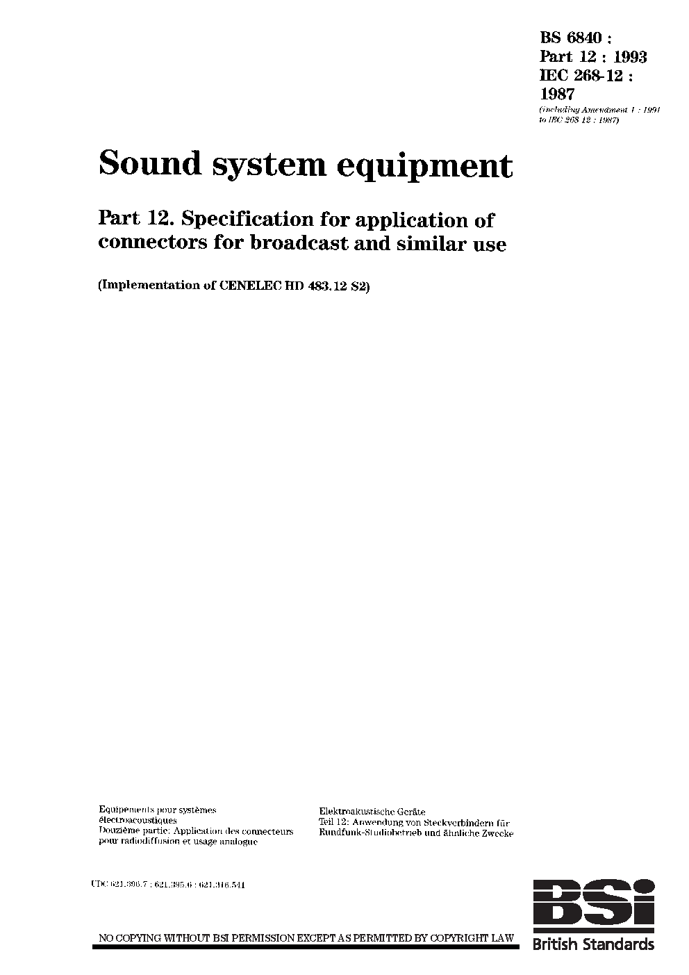 Sound system equipment Specification for application of connectors broadcast and similar use