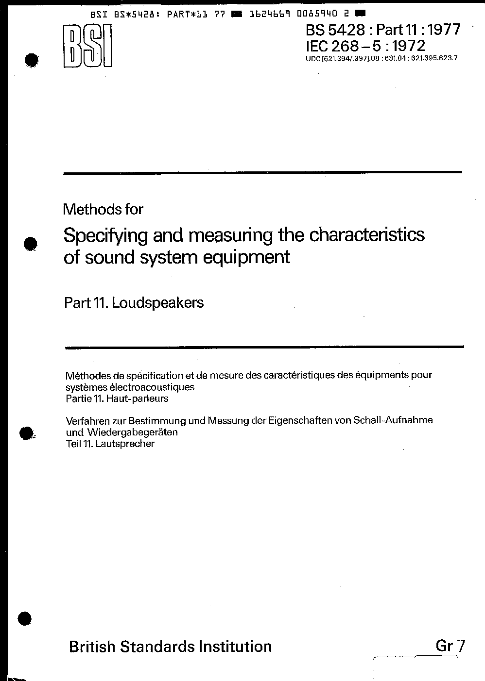 Sound system equipment Methods for specifying and measuring the characteristics of loudspeakers