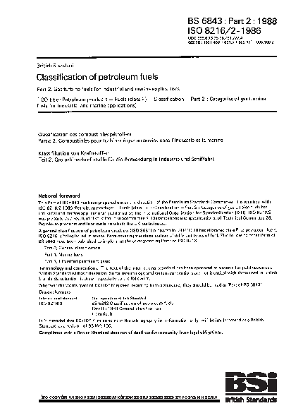 Classification of petroleum fuels. Gas turbine fuels for industrial and marine applications