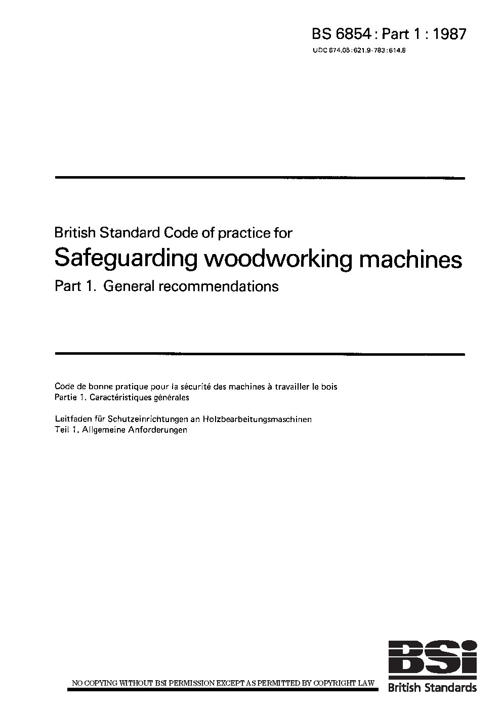 Code of practice for safeguarding woodworking machines General recommendations