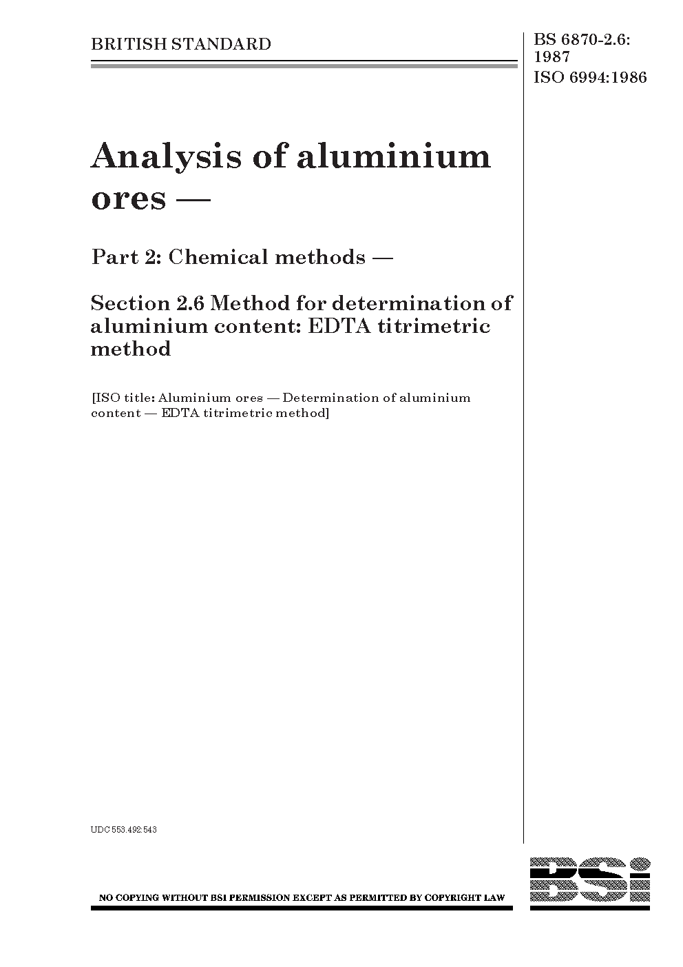 Analysis of aluminium ores. Chemical methods Method for determination content: EDTA titrimetric method