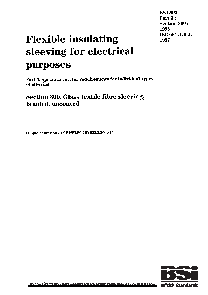 Flexible insulating sleeving for electrical purposes. Specification requirements individual types of Glass textile fibre sleeving, braided, uncoated
