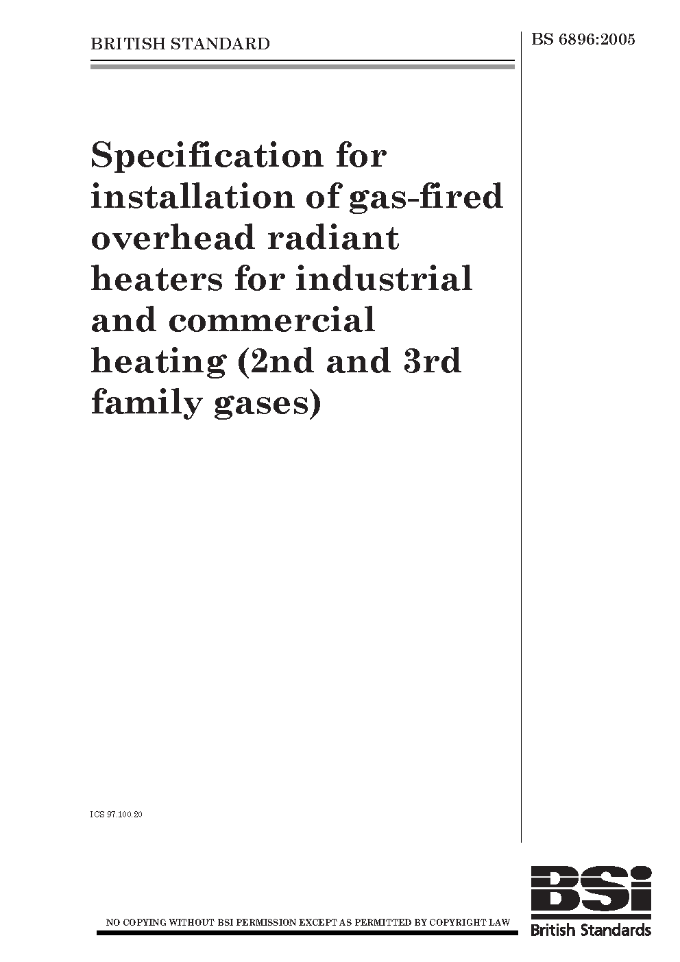 Specification for installation and maintenance of gas-fired overhead radiant heaters for industrial and commercial heating (2nd and 3rd family gases)