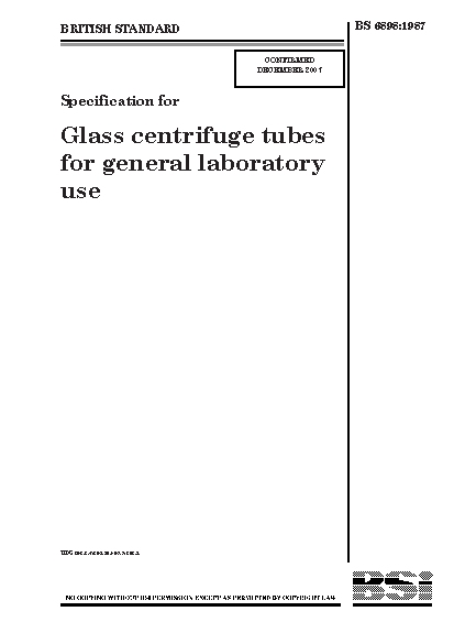 Specification for glass centrifuge tubes for general laboratory use