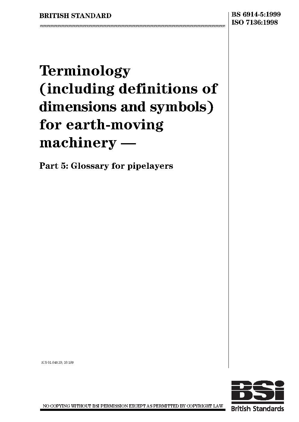 Terminology (including definitions of dimensions and symbols) for earth-moving machinery Glossary pipelayers