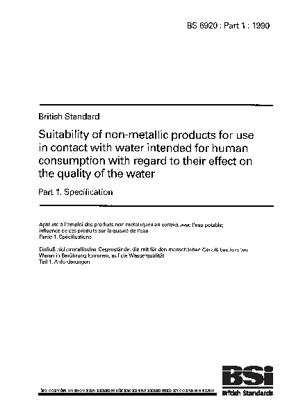 Suitability of non-metallic products for use in contact with water intended human consumption regard to their effect on the quality Specification