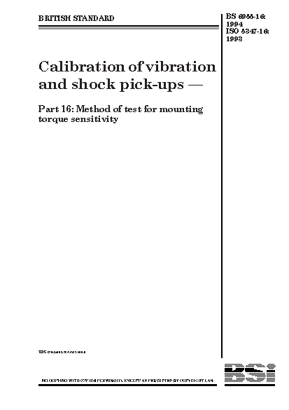 Measuring instruments;Vibration testing;Vibration;Transducers;Calibration;Mechanical shock;Torque;Test equipment;Vibration measurement;Mounting pads;Pick-ups