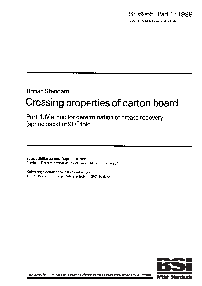 Creasing properties of carton board. Method for determination crease recovery (spring back) 90° fold