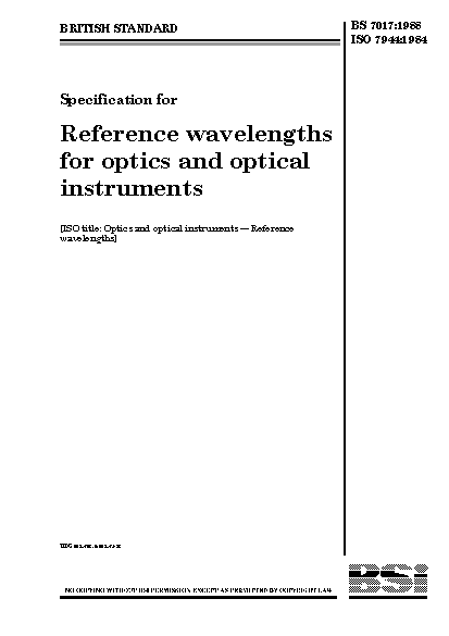 Specification for reference wavelengths for optics and optical instruments