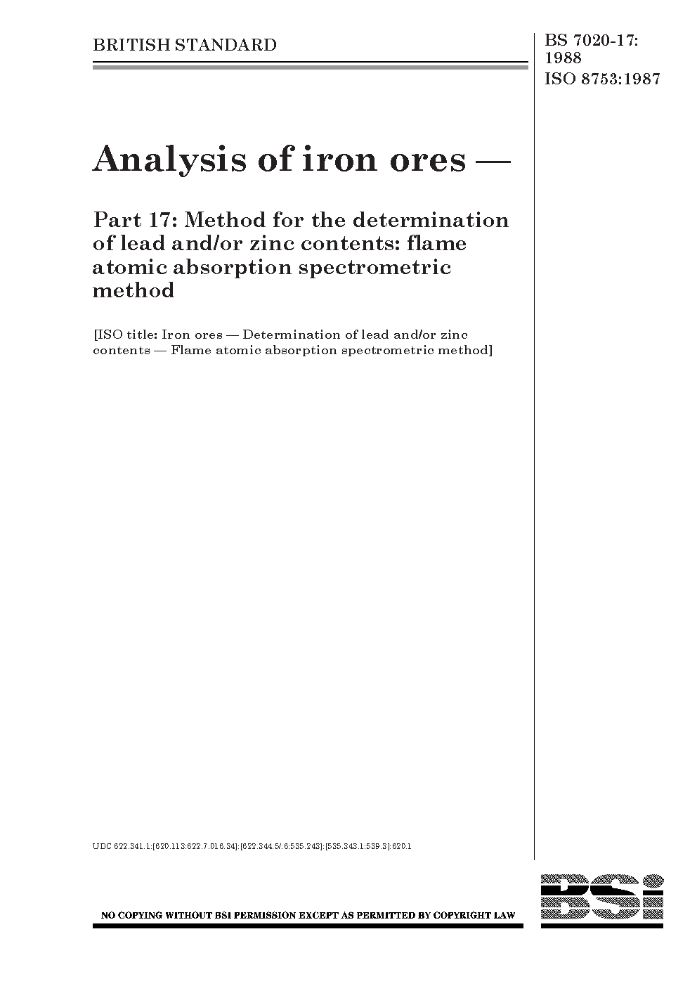 Analysis of iron ores Method for the determination lead and/or zinc contents: flame atomic absorption spectrometric method