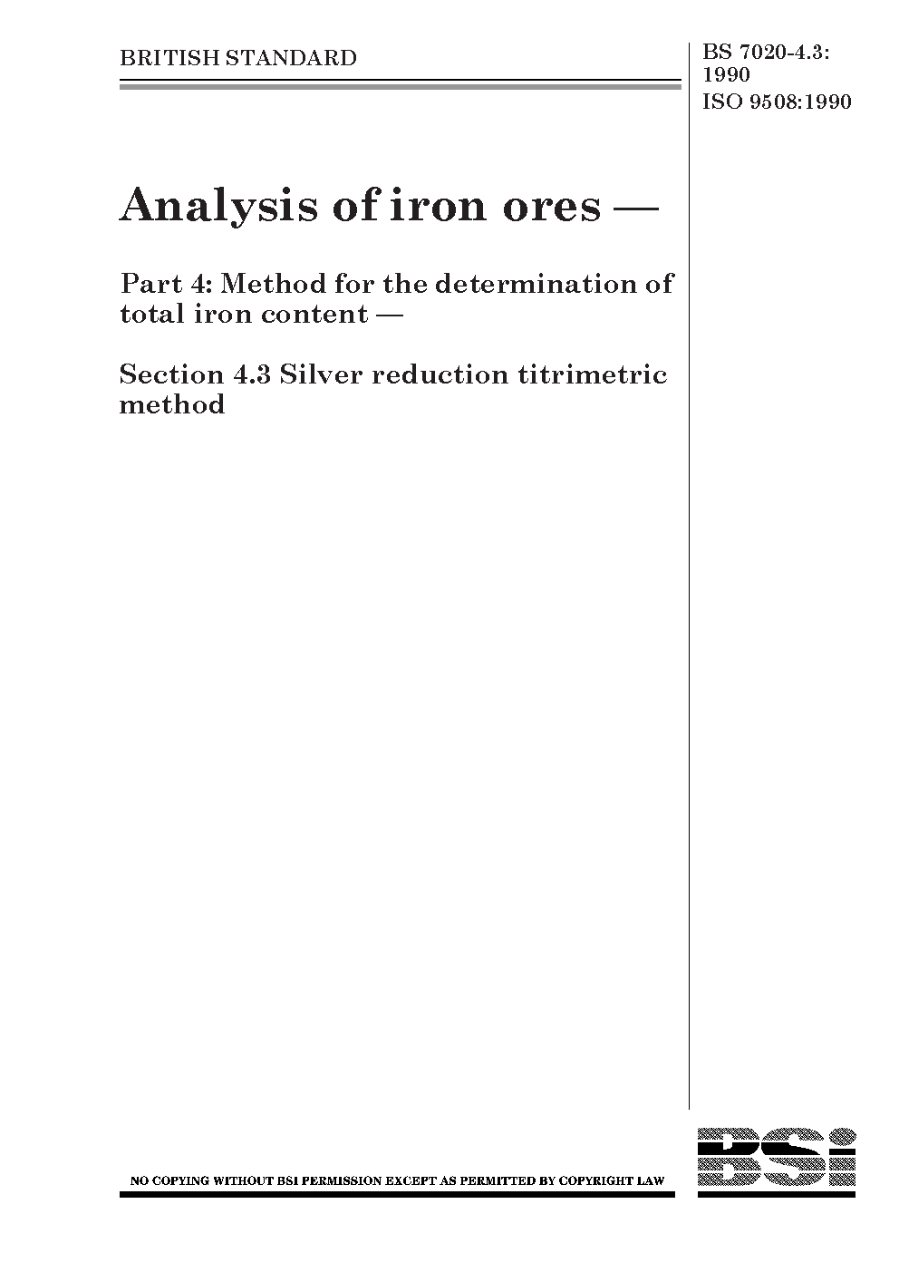 Analysis of iron ores. Method for the determination total content Silver reduction titrimetric method