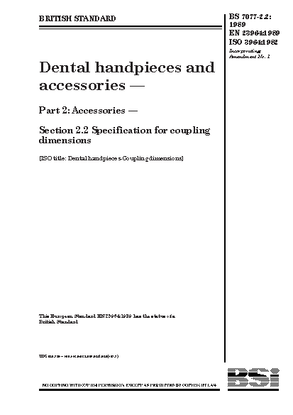 Dental handpieces and accessories. Accessories Specification for coupling dimensions