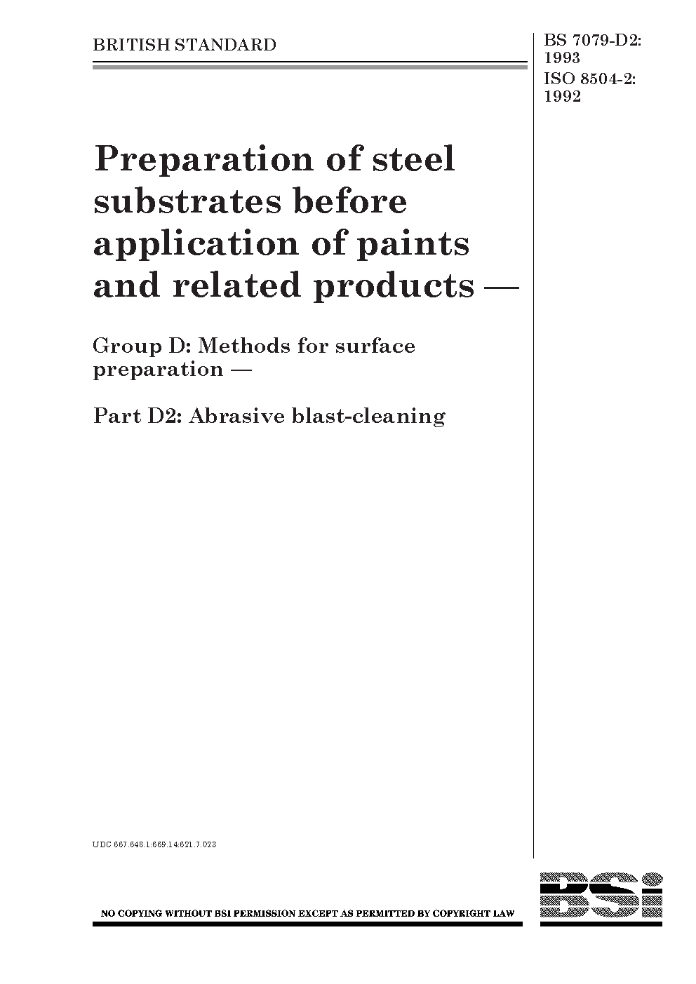 Preparation of steel substrates before application paints and related products. Methods for surface preparation Abrasive blast-cleaning