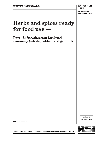 Herbs and spices ready for food use Specification dried rosemary (whole, rubbed ground)
