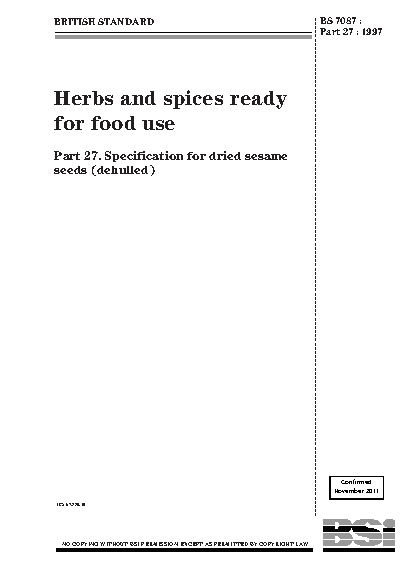 Herbs and spices ready for food use Specification dried sesame seeds (dehulled)