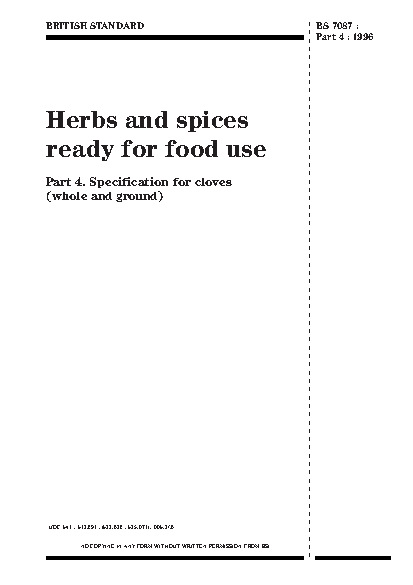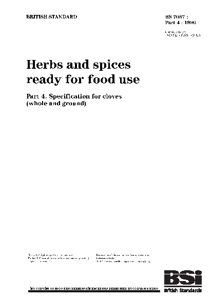 Herbs and spices ready for food use Specification cloves (whole ground)