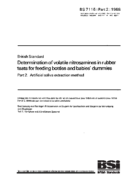 Determination of volatile nitrosamines in rubber teats for feeding bottles and babies' dummies Artificial saliva extraction method