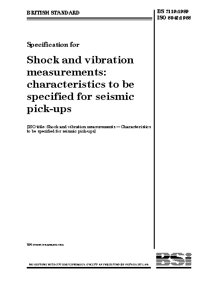 Specification for shock and vibration measurements: characteristics to be specified for seismic pick-ups