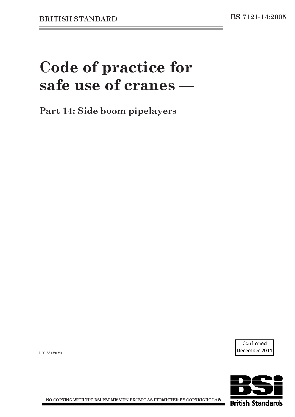 Code of practice for safe use cranes Side boom pipelayers