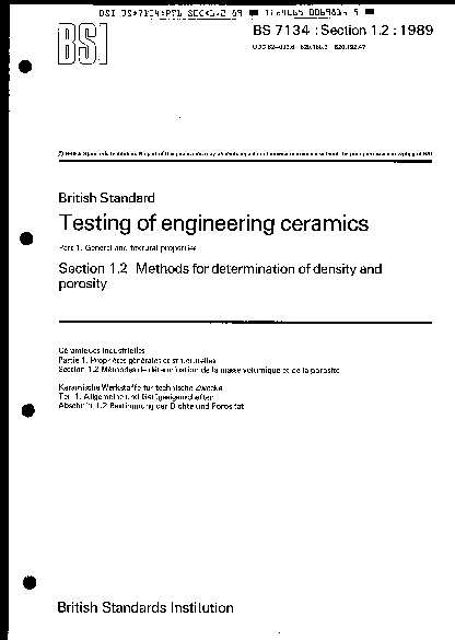 Testing of engineering ceramics. General and textural properties. Methods for determination density porosity