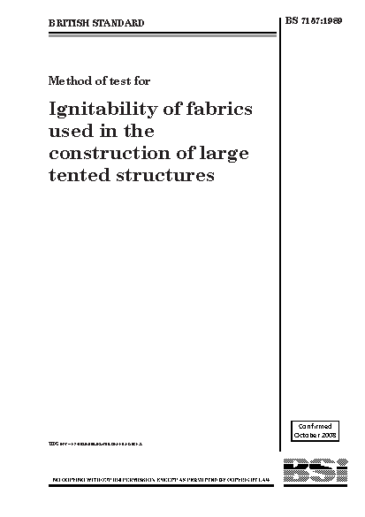 Method of test for ignitability of fabrics used in the construction of large tented structures