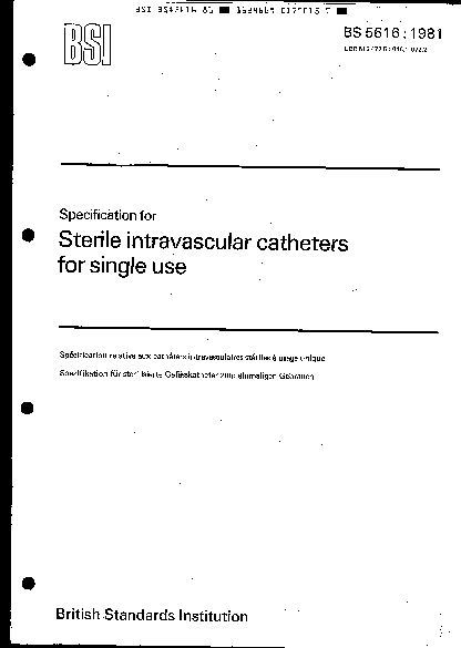 Sterile intravascular catheters and ancillary devices for single use Specification introducer needles, cannulae, guide wires, dilators, valves connectors
