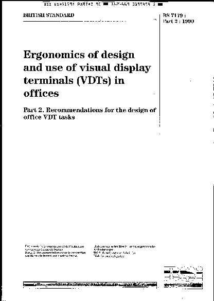Ergonomics of design and use visual display terminals (VDTs) in offices Recommendations for the office VDT tasks