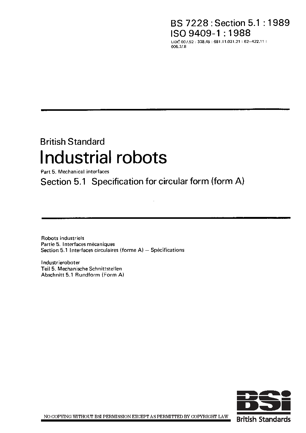 Industrial robots. Mechanical interfaces Specification for circular form (form A)