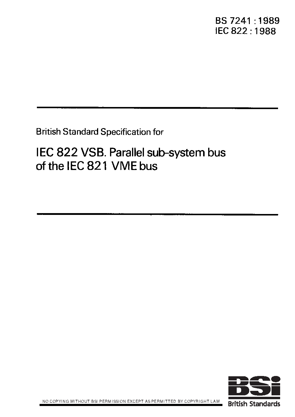 Specification for IEC 822 VSB: parallel sub-system bus of the IEC 821 VME bus