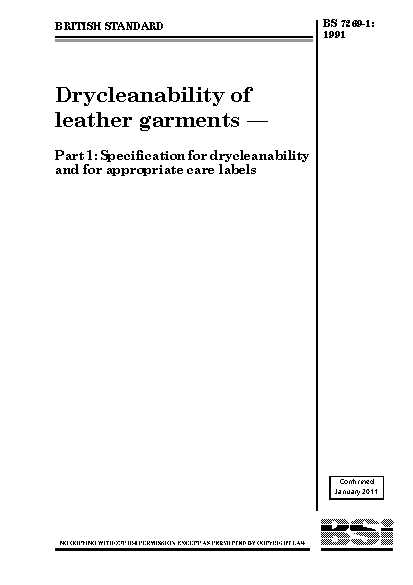 Drycleanability of leather garments Specification for drycleanability and appropriate care labels