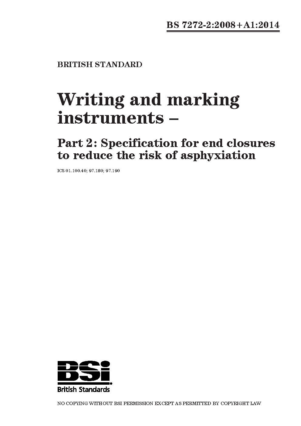 Writing and marking instruments Specification for end closures to reduce the risk of asphyxiation