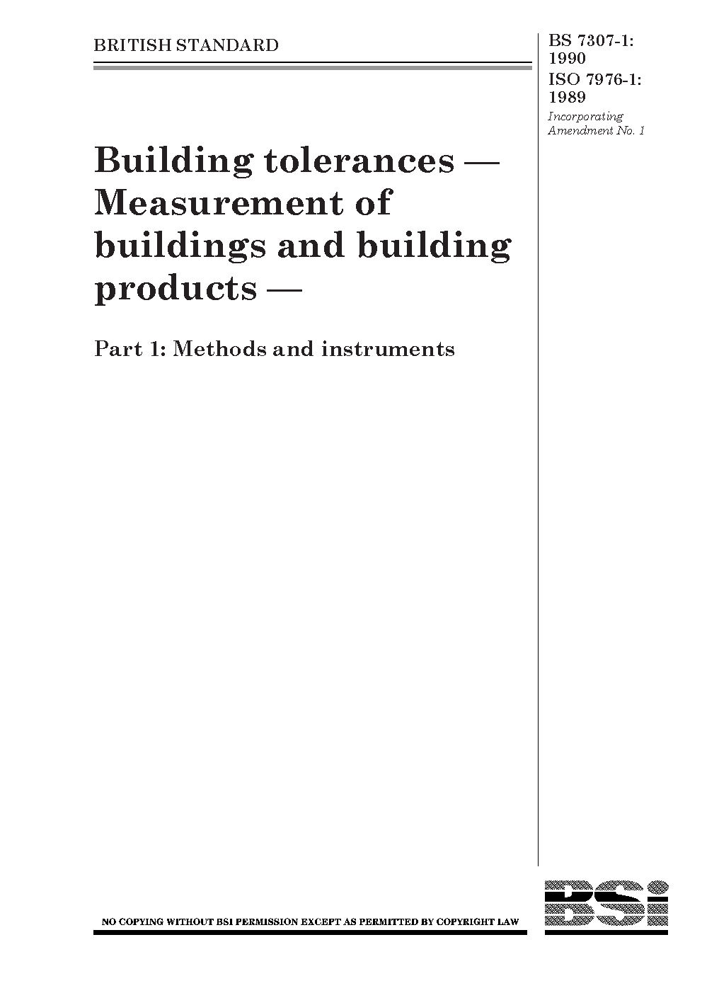 Building tolerances. Measurement of buildings and building products Methods instruments