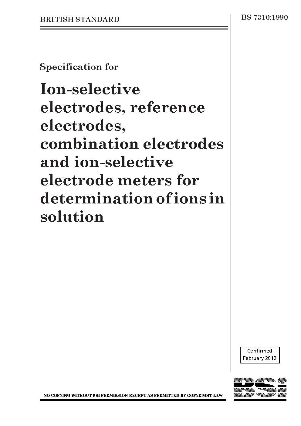 Specification for ion-selective electrodes, reference electrodes, combination electrodes and ion-selective electrode meters for determination of ions in solution