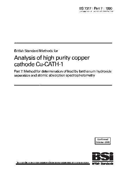 Methods for analysis of high purity copper cathode Cu-CATH-1 Method determination lead by lanthanum hydroxide separation and atomic absorption spectrophotometry