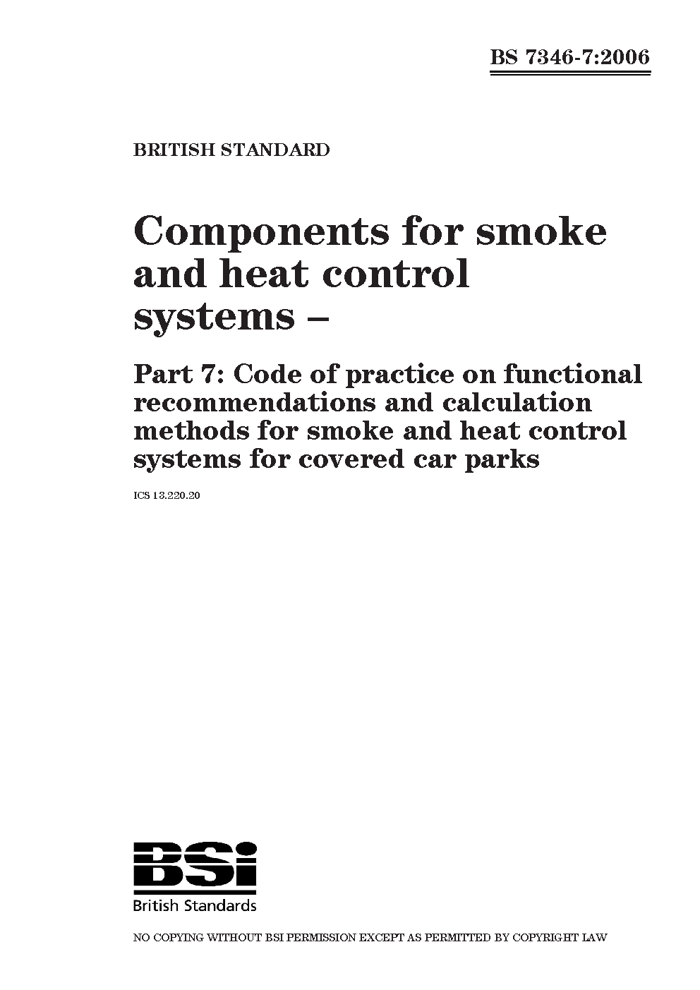 Components for smoke and heat control systems Code of practice on functional recommendations calculation methods covered car parks