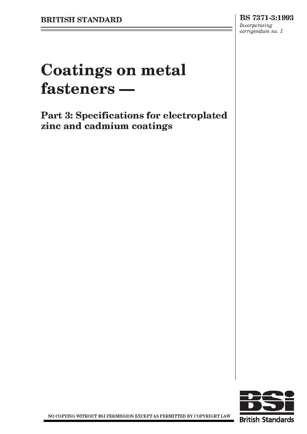 Coatings on metal fasteners Specification for electroplated zinc and cadmium coatings