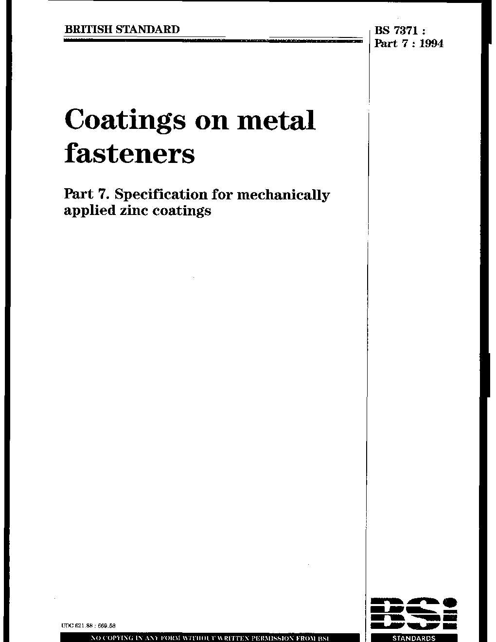 Coatings on metal fasteners Specification for mechanically applied zinc and based coatings