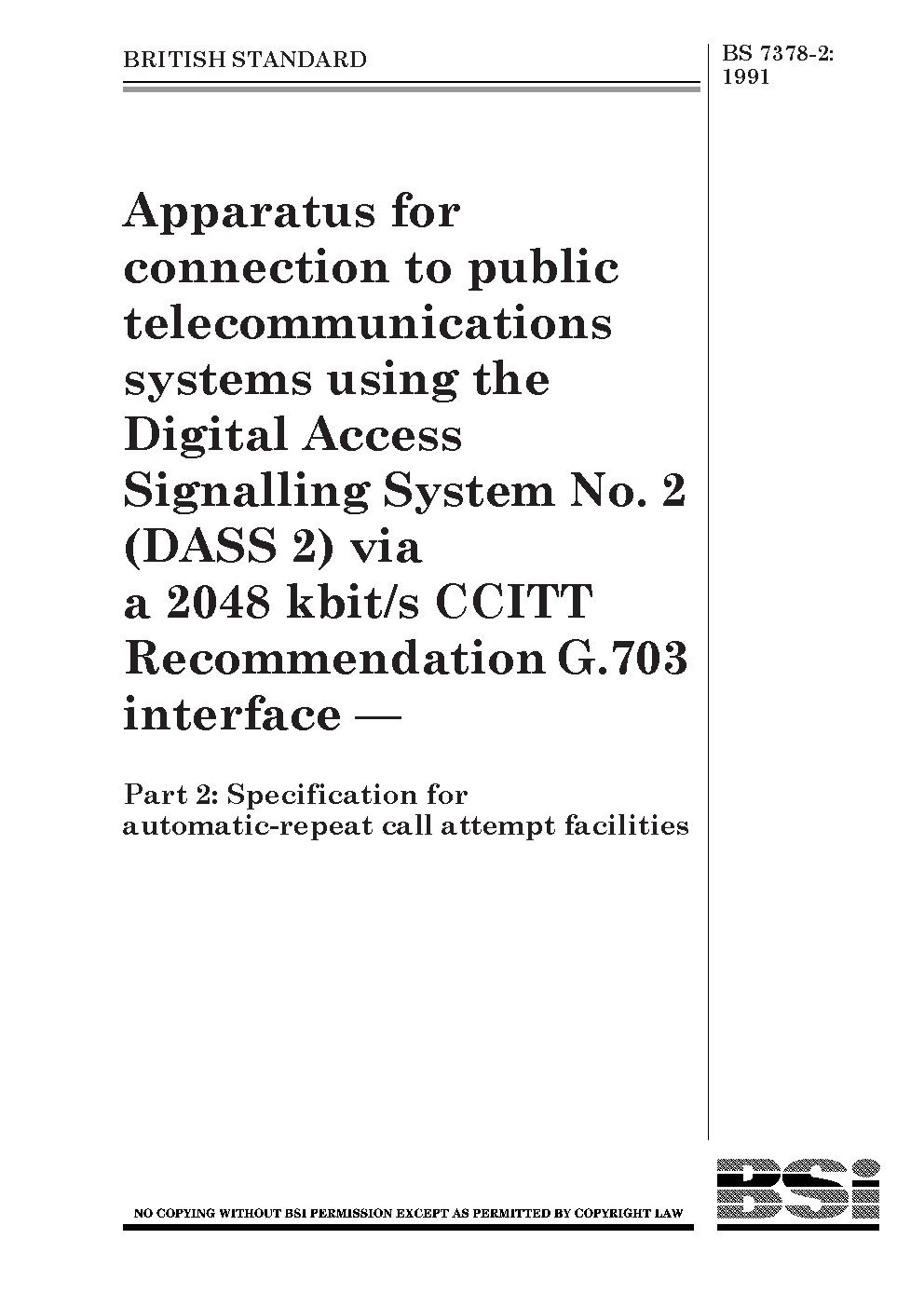Apparatus for connection to public telecommunications systems using the Digital Access Signalling System No. 2 (DASS 2) via a 2048 kbit/s CCITT Recommendation G.703 interface Specification automatic-repeat call attempt facilities