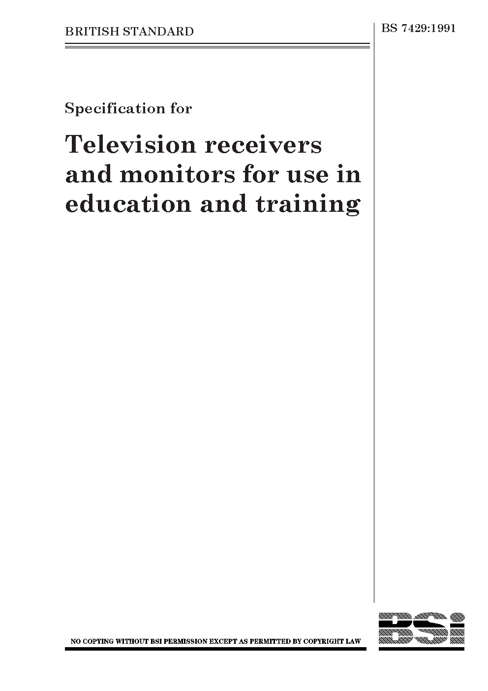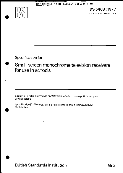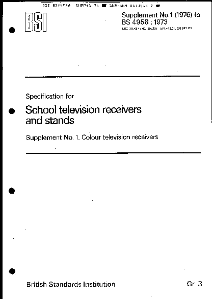 Specification for television receivers and monitors for use in education and training
