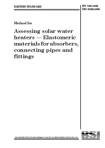 Approval testing;Synthetic rubber;Mechanical testing;Water heaters;Qualification approval;Pipe fittings;Test specimens;Vulcanized rubber;Heaters;Ageing tests;Natural rubber;Solar power;Pipes;Quality control;Quality assurance;Testing conditions;Elastomers;Solar heating