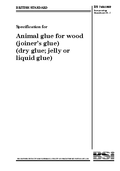 Specification for animal glue for wood (joiners's glue) (dry glue; jelly or liquid glue)