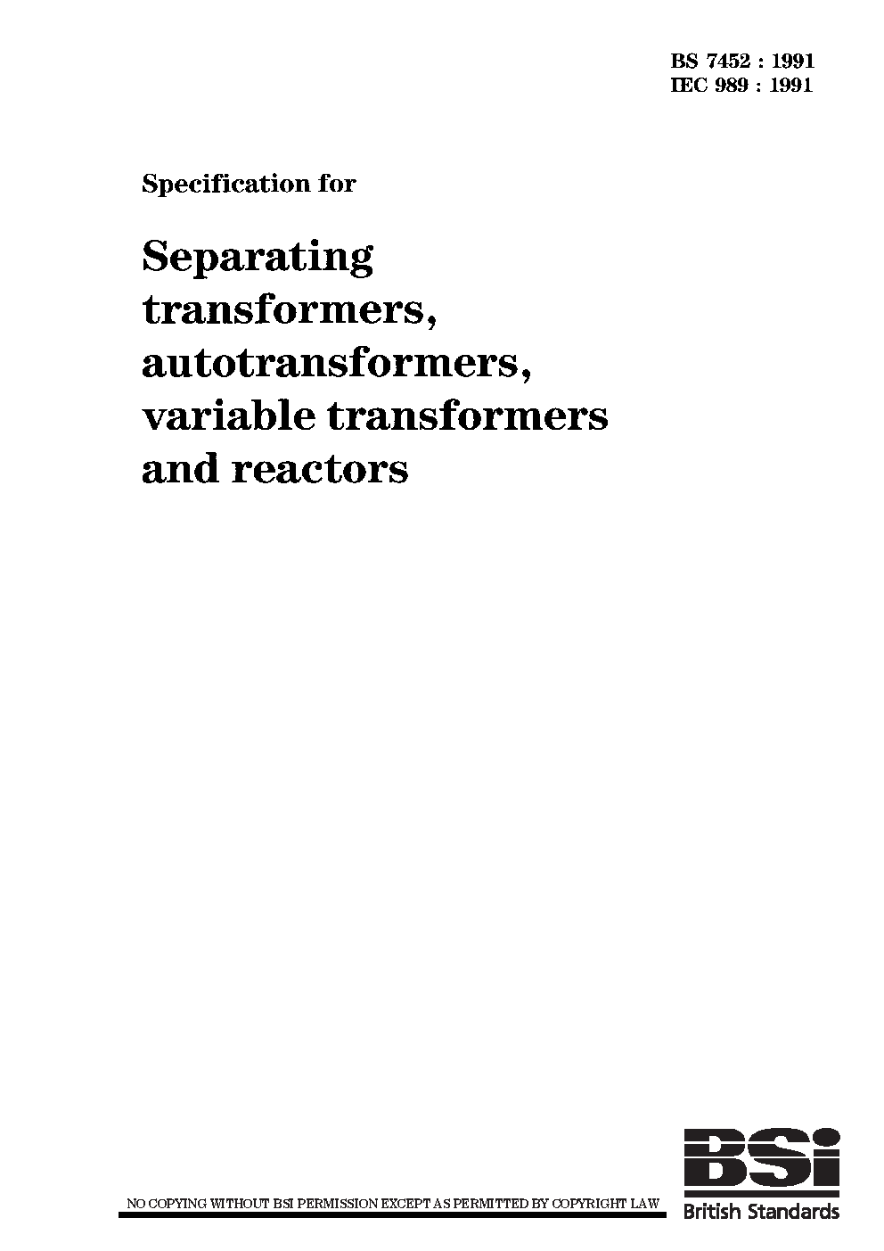 Specification for separating transformers, autotransformers, variable transformers and reactors