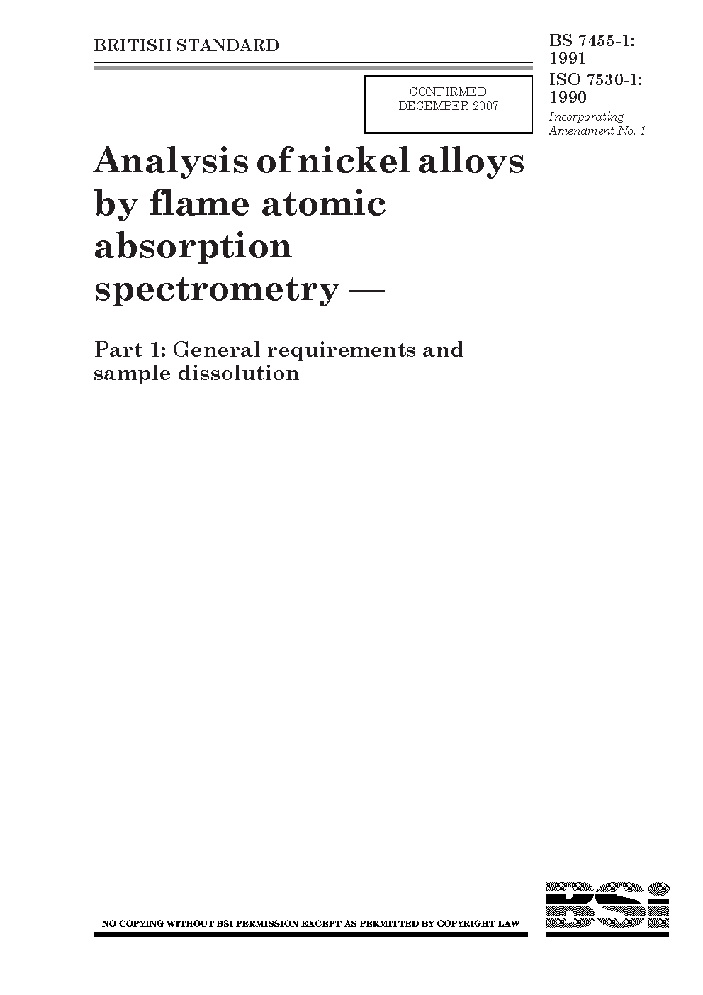 Analysis of nickel alloys by flame atomic absorption spectrometry General requirements and sample dissolution