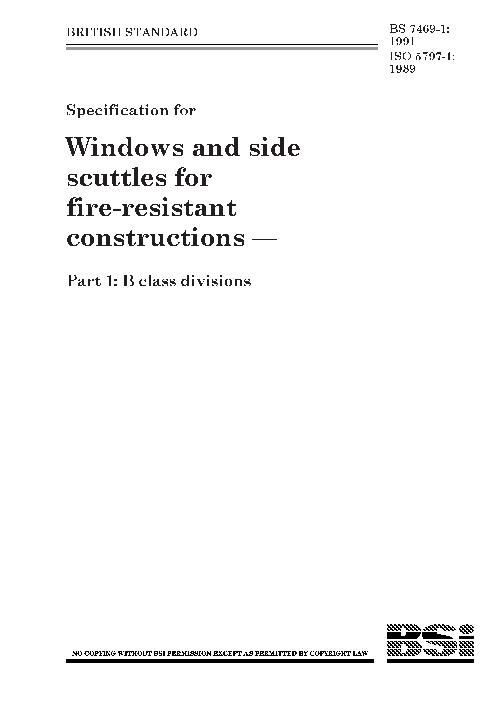 Specification for windows and side scuttles fire-resistant constructions. B class divisions