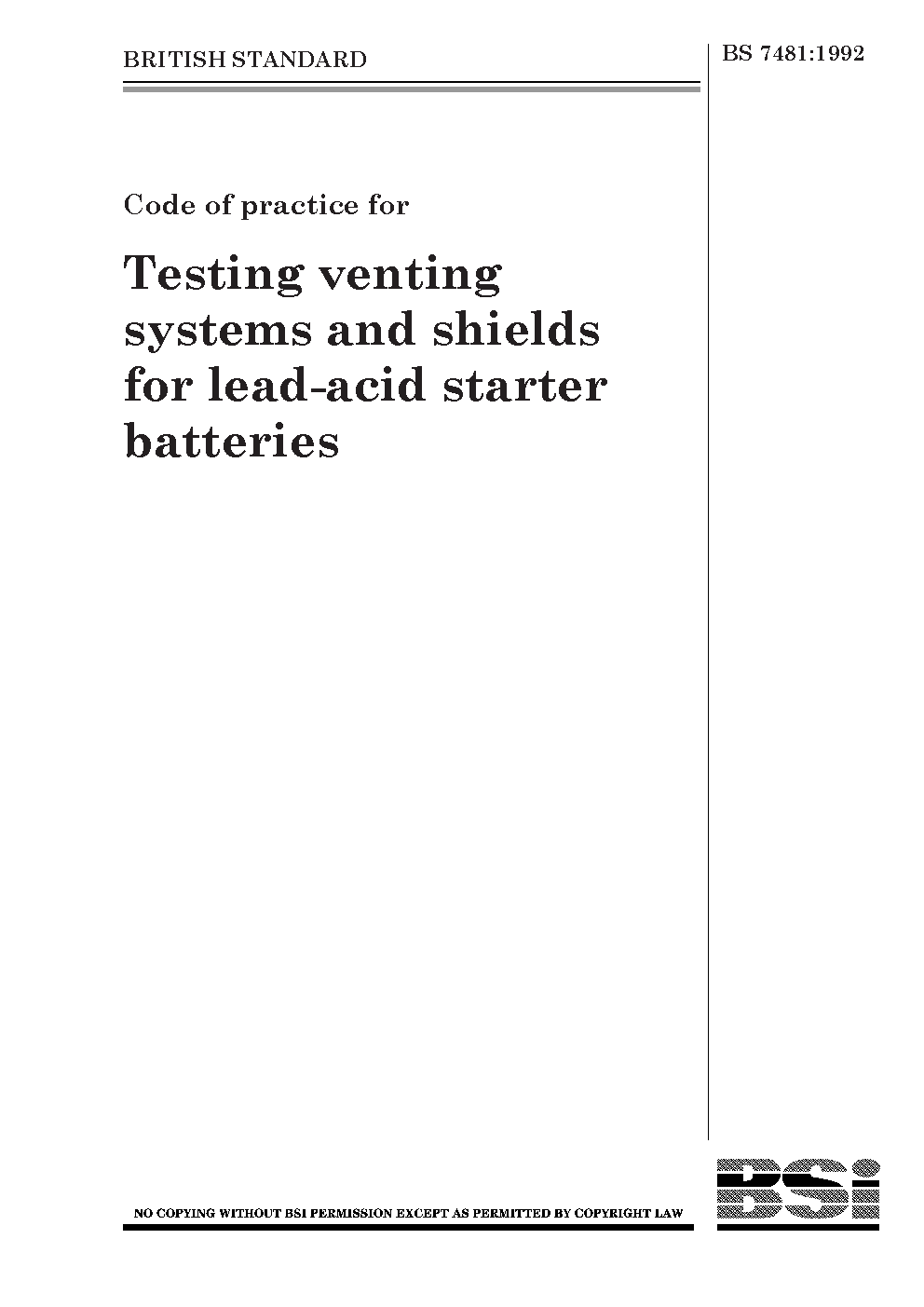 Code of practice for testing venting systems and shields for lead-acid starter batteries