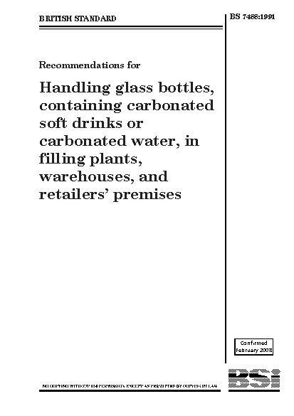 Recommendations for handling glass bottles, containing carbonated soft drinks or carbonated water, in filling plants, warehouses, and retailers' premises