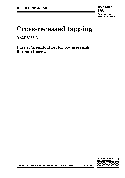 Cross-recessed tapping screws Specification for countersunk flat head