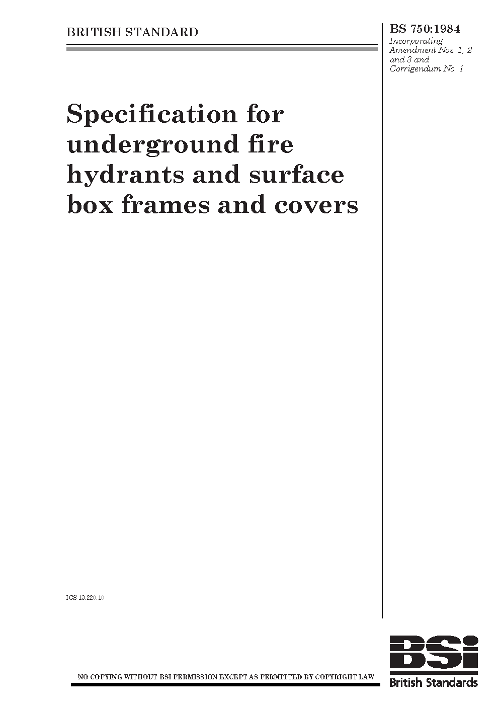 Grades (quality);Fire hydrants;Dimensions;Deflection tests;Hydrostatic pressure;Screw-down valves;Surface boxes;Hydraulic tests;Loading;Design;Firefighting equipment;Valve components;Water valves;Type testing;Marking;Underground;Leak tests;Gate valves;Valves;Pipe fittings